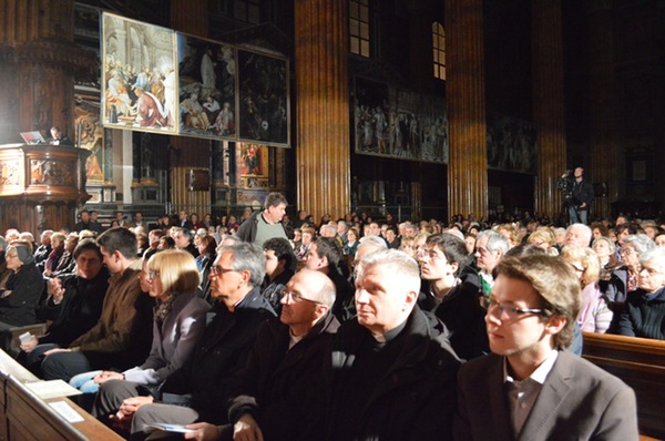 «Io sto in mezzo a voi come colui che serve». Le parole che Gesù rivolge ai discepoli e il gesto emblematico della lavanda dei piedi sono nel Duomo di Novara, venerdì 21 marzo alle ore 20.45, il tema del secondo Quaresimale della Cattedrale, intitolato “Gesù all’Ultima Cena: il dilemma del potere tra chi sta a tavola e chi serve”. Protagonista dell’incontro è madre Anna Maria Cànopi, abbadessa del monastero “Mater Ecclesiae” dell’Isola di San Giulio ad Orta, in una delle sue rarissime uscite dal chiostro. L’incontro, presieduto dal vescovo Franco Giulio Brambilla, è un appuntamento di formazione e catechesi rivolto all’intero territorio diocesano. È per questo trasmesso in streaming live a 15 sale parrocchiali, raggiungendo anche il pubblico non novarese, che ha già apprezzato la possibilità di vedere in diretta, il 14 marzo scorso, l’intervento in Duomo di don Luigi Ciotti. I successivi appuntamenti del percorso vedranno la presenza in Duomo del cardinale Gianfranco Ravasi (28 marzo) e di Enzo Bianchi (4 aprile), e di attori e artisti, impegnati nella lettura dei testi e nell’esecuzione di intermezzi musicali. Il compito è affidato, questo venerdì, alla voce di Andrea Piazza – attore e autore teatrale – e alla viola di Riccardo Brumat. Il commento visivo sarà invece offerto dagli affreschi della vita di Cristo di Gaudenzio Ferrari, esposti in Duomo, con la scena della Lavanda dei piedi evidenziata da una apposita illuminazione.