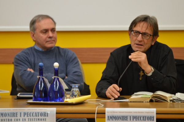 «"Gomorra" e "Terra dei fuochi". Quando sento queste espressioni per definire le regioni del sud Italia mi viene un moto di rabbia». Lo dice don Aniello Manganiello, protagonista nel Seminario di Novara dell’incontro «Gesù è più forte della Camorra. Testimonianza sull’opera di misericordia spirituale “ammonire i peccatori”», proposto dalla Caritas diocesana e dalla Pastorale giovanile vicariale nel pomeriggio di domenica 6 marzo. «Si squalificano così queste regioni, ricche di grandi risorse umane e naturali, dimenticando che la criminalità organizzata sta infettando anche il centro e il nord d’Italia, dove realizza i suoi affari più redditizi», prosegue don Aniello, che racconta il suo arrivo nel 1994 a Scampia, quartiere di Napoli «degradato da un’urbanistica popolare dimentica della dignità umana», dove, parroco del rione “Don Guanella”, si spende per 16 anni in un’attività pastorale con forte ricaduta sociale: una squadra di calcio, per attirare i ragazzi educandoli alla legalità, e la catechesi dei piccoli come occasione di revisione di vita di intere famiglie. «Presto sono arrivate le minacce della camorra, toccata nei suoi interessi, ma ho rifiutato la scorta: volevo restare esposto al pericolo, come i miei parrocchiani, per inoculare in loro il coraggio di continuare a lottare e di non cedere alla paura». Paura che, insieme con la miseria, è un’arma potente nella mani di una criminalità che, nel vuoto di uno stato assente, fa da “ammortizzatore sociale” e offre guadagni altissimi a chi accetta il suo stile di vita, ma – soggiunge Manganiello – «a prezzo del rischio quotidiano di essere arrestati dalle forze dell’ordine, o uccisi dai clan rivali». Un’esistenza all’insegna di violenza e prevaricazione, in cui il Vangelo riesce a far breccia, primo motore di storie di conversione che don Aniello racconta nel suo ultimo libro “La meglio gioventù di Scampia”: «ho smesso di genuflettermi davanti al potere, e di tenere la testa bassa – scrive uno dei “suoi” ragazzi –. Con te ho conosciuto la gioia di essere libero».