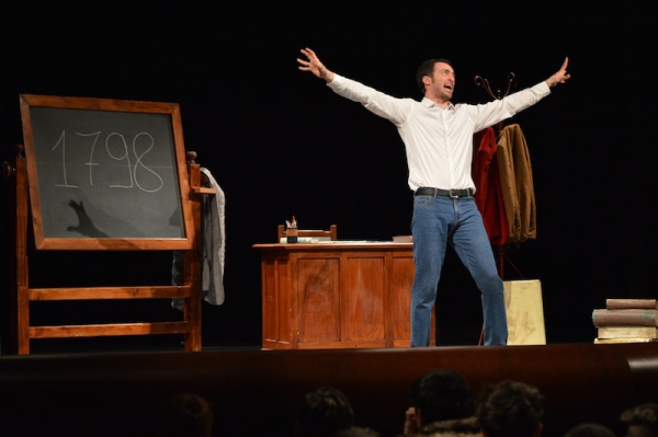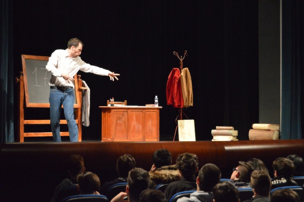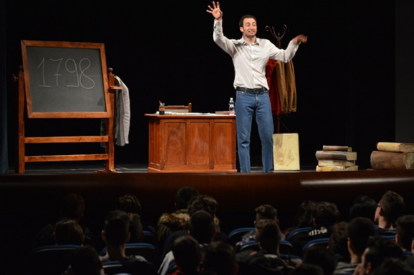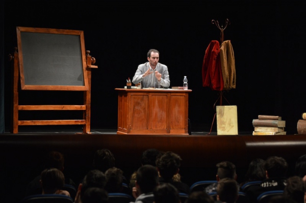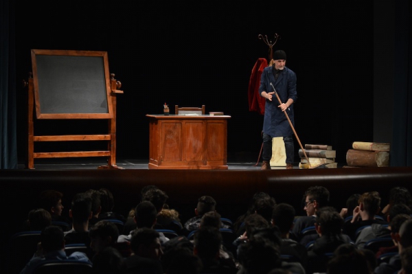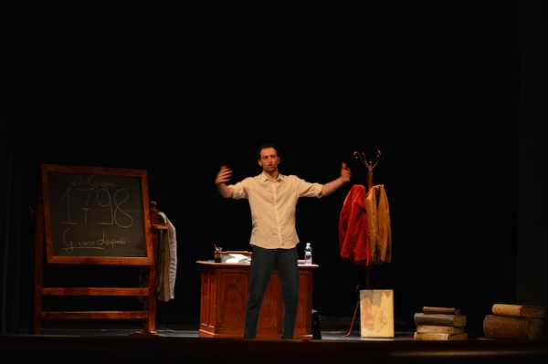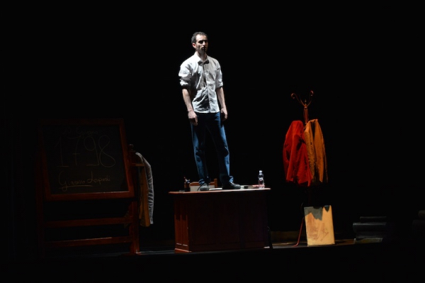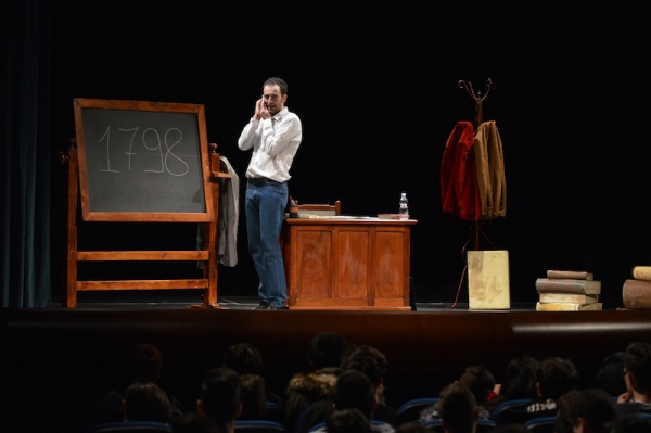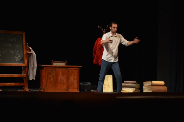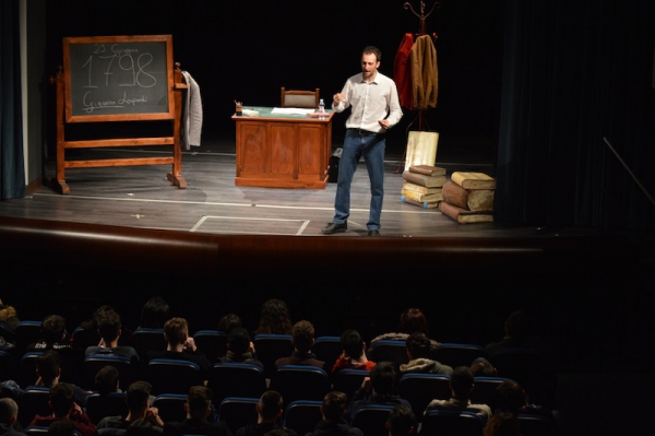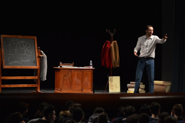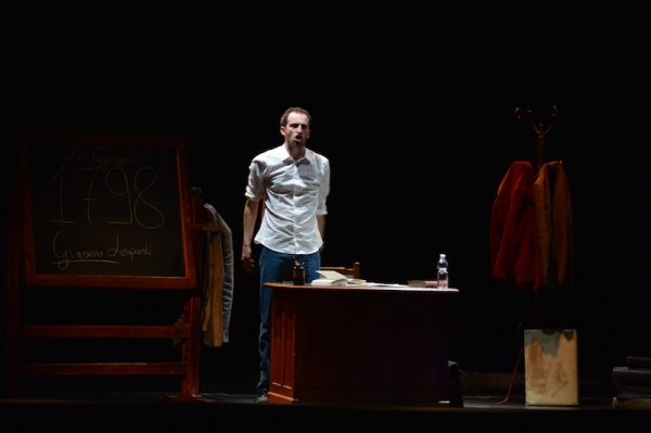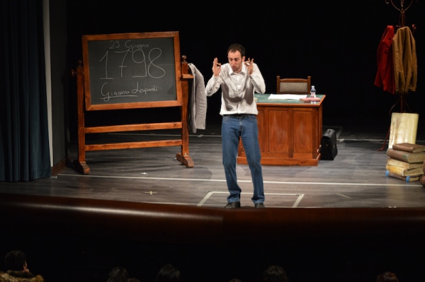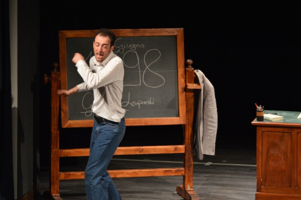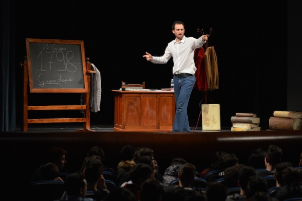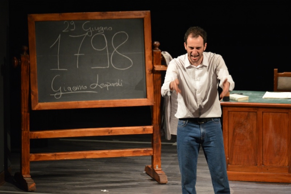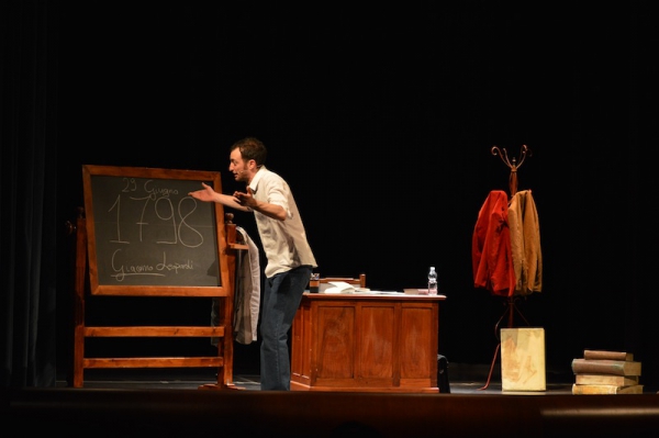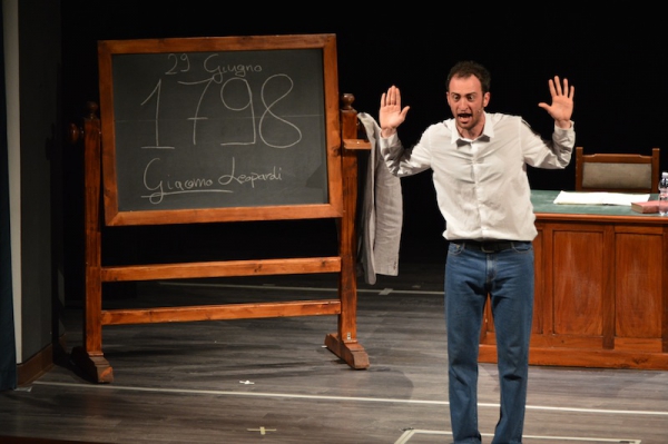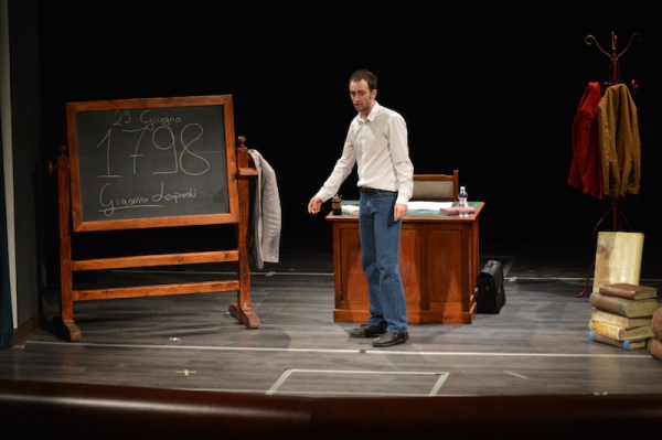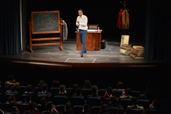 Andrea ha un sogno: insegnare. Ma nonostante il 110 e lode in lettere e filosofia per vivere è costretto a lavorare in un call center finché un giorno finalmente riceve l’incarico di una supplenza proprio nella scuola media da lui frequentata da ragazzino. La professoressa che deve sostituire gli lascia l’arduo compito di spiegare ai ragazzi “vita e opere di Giacomo Leopardi”. Così Andrea, anzi il professor Roversi, dovrà misurarsi con una classe che, naturalmente, sarà rappresentata dai ragazzi presenti in Teatro. Nasce così una bizzarra ma coinvolgente lezione nella quale si mescoleranno poesie, riflessioni personali, interazioni con la platea e, attraverso l’opera di Giacomo Leopardi, il professor Roversi toccherà temi e problemi legati all’adolescenza ovvero l’inadeguatezza, il desiderio e la paura d'amare, la sensazione di essere sbagliati, di essere “fuori misura”. Un monologo divertente, appassionato e originale recitato da un bravissimo Andrea Robbiano che ha una qualità comunicativa fresca, spontanea ed emozionante che farà riflettere il giovane pubblico sull’importanza della poesia, dell’arte ma anche sul rapporto insegnante - studente e persino sulla necessità, sull’importanza della Scuola e dello studio. Una lezione teatrale che affascinerà i giovani spettatori e che saprà stimolare ciò che troppo spesso è assopito: la curiosità.