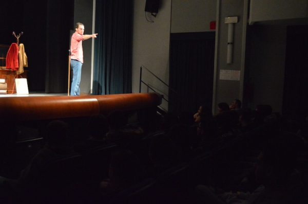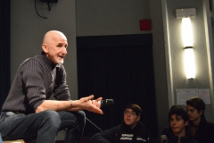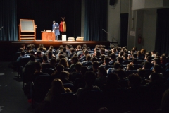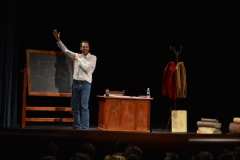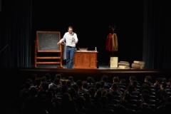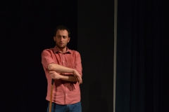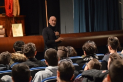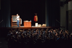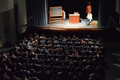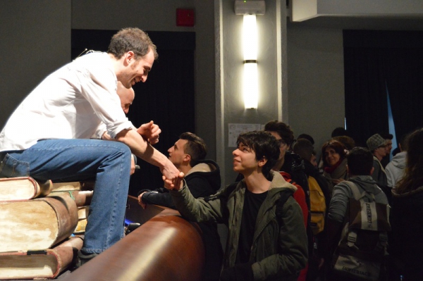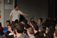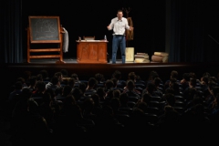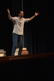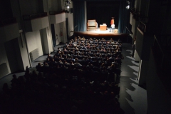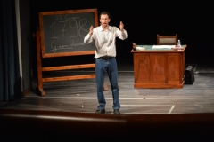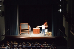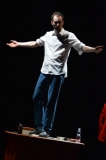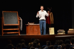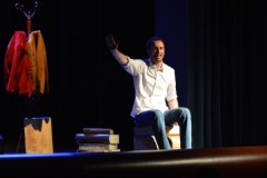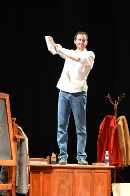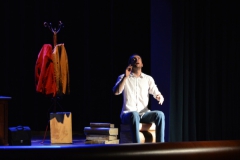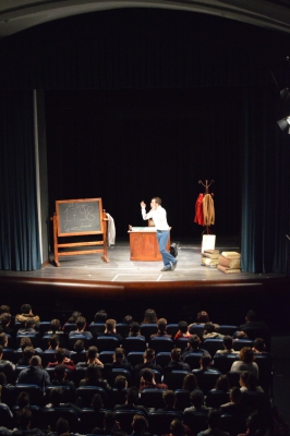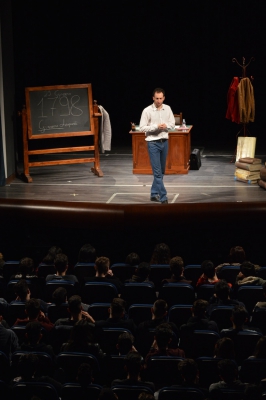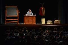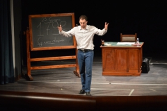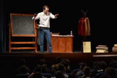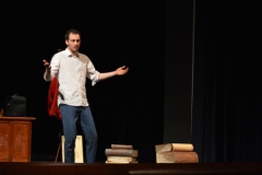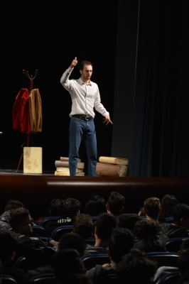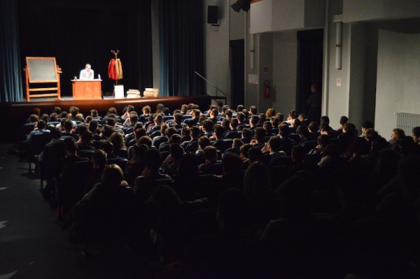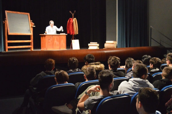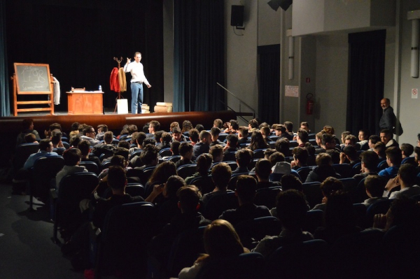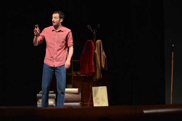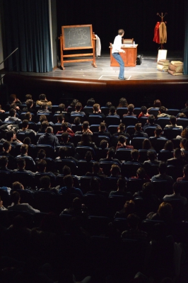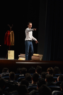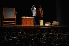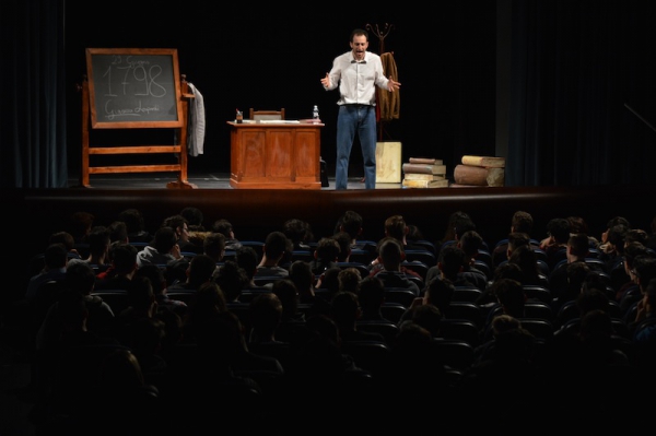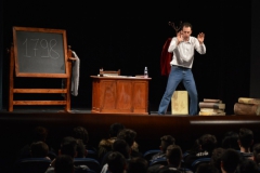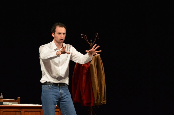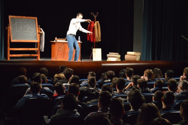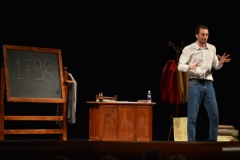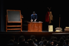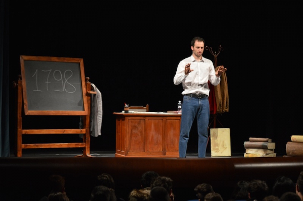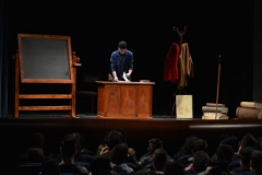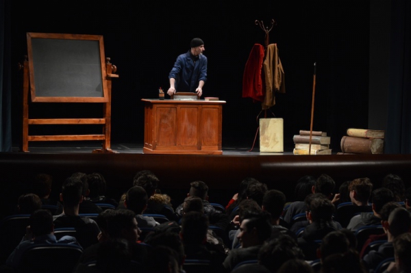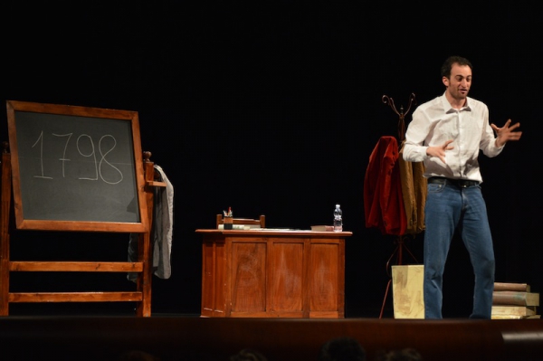 Andrea ha un sogno: insegnare. Ma nonostante il 110 e lode in lettere e filosofia per vivere è costretto a lavorare in un call center finché un giorno finalmente riceve l’incarico di una supplenza proprio nella scuola media da lui frequentata da ragazzino. La professoressa che deve sostituire gli lascia l’arduo compito di spiegare ai ragazzi “vita e opere di Giacomo Leopardi”. Così Andrea, anzi il professor Roversi, dovrà misurarsi con una classe che, naturalmente, sarà rappresentata dai ragazzi presenti in Teatro. Nasce così una bizzarra ma coinvolgente lezione nella quale si mescoleranno poesie, riflessioni personali, interazioni con la platea e, attraverso l’opera di Giacomo Leopardi, il professor Roversi toccherà temi e problemi legati all’adolescenza ovvero l’inadeguatezza, il desiderio e la paura d'amare, la sensazione di essere sbagliati, di essere “fuori misura”. Un monologo divertente, appassionato e originale recitato da un bravissimo Andrea Robbiano che ha una qualità comunicativa fresca, spontanea ed emozionante che farà riflettere il giovane pubblico sull’importanza della poesia, dell’arte ma anche sul rapporto insegnante - studente e persino sulla necessità, sull’importanza della Scuola e dello studio. Una lezione teatrale che affascinerà i giovani spettatori e che saprà stimolare ciò che troppo spesso è assopito: la curiosità.