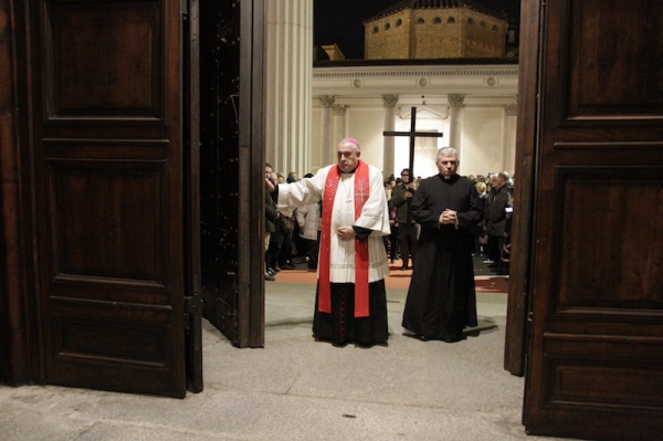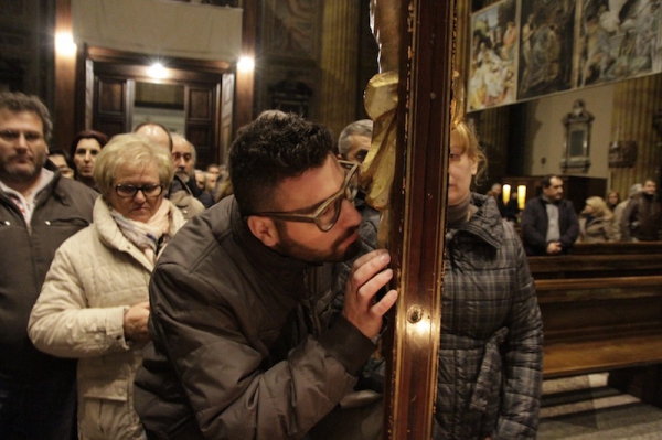 «Dobbiamo comprendere – afferma don Silvio Barbaglia, presidente del comitato organizzatore – come la misericordia di Dio scaturisca dall’offerta di sé che Gesù compie morendo sulla croce. Le tradizionali processioni del venerdì santo si trasformano così in un pellegrinaggio dell’intera comunità cristiana novarese verso il Duomo, per varcare la sua Porta Santa». È il primo di altri eventi di pellegrinaggio, organizzati a livello vicariale e diocesano, offerti come occasioni per sperimentare l’abbraccio con un Dio che – come il padre della parabola del Vangelo secondo Luca – corre incontro al figlio che ritorna a casa in cerca di soccorso e perdono, gli si getta al collo, baciandolo, e ordina ai servi di fare festa. È la gioia del perdono e della misericordia, “via che unisce Dio e l’uomo”, atto creativo di un Dio che, con il suo Spirito, ricostruisce la relazione vitale che l’uomo ha rotto col peccato.