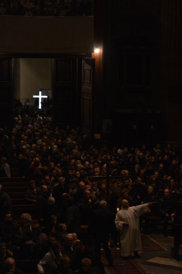 A piedi dalle chiese parrocchiali di Novara, in processione verso il Duomo, nella sera del Venerdì Santo, per vivere l’esperienza del perdono e il dono della Misericordia, offerto da Gesù morente in croce.